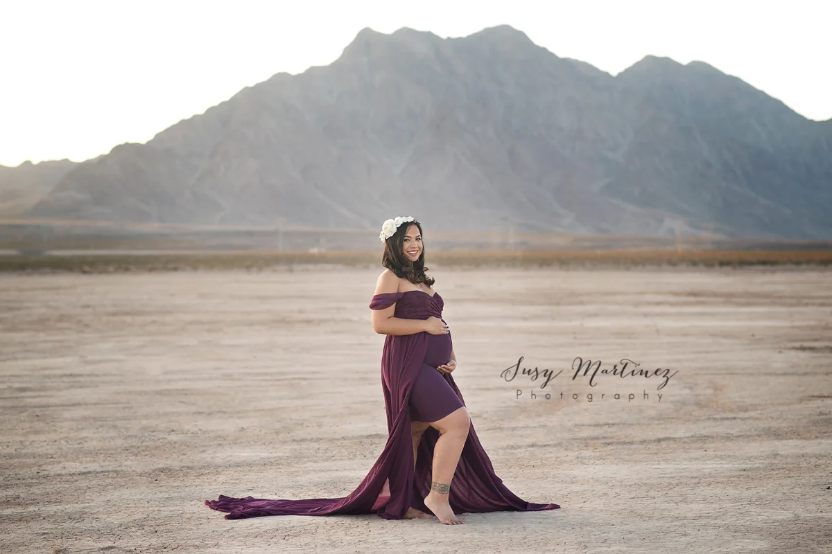 Gender reveal sessions are always so exciting. I love capturing the faces of each member of the family as they find out if baby will be a boy or girl. As you can tell in the photo below this family was very surprised and excited they were getting a baby girl! As a Las Vegas Desert Maternity Photographer I was delighted to do this session at the dry lake bed. I think this was the perfection location for a gender reveal. After the suspense of finding out the gender we continued the maternity session with a beautiful gown from Sew Trendy Accessories. Doing this session was a neat experience and I hope to do more like these in the future.